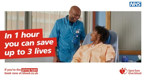 If you are able to give blood, please go to www.blood.co.uk to book an appointment.