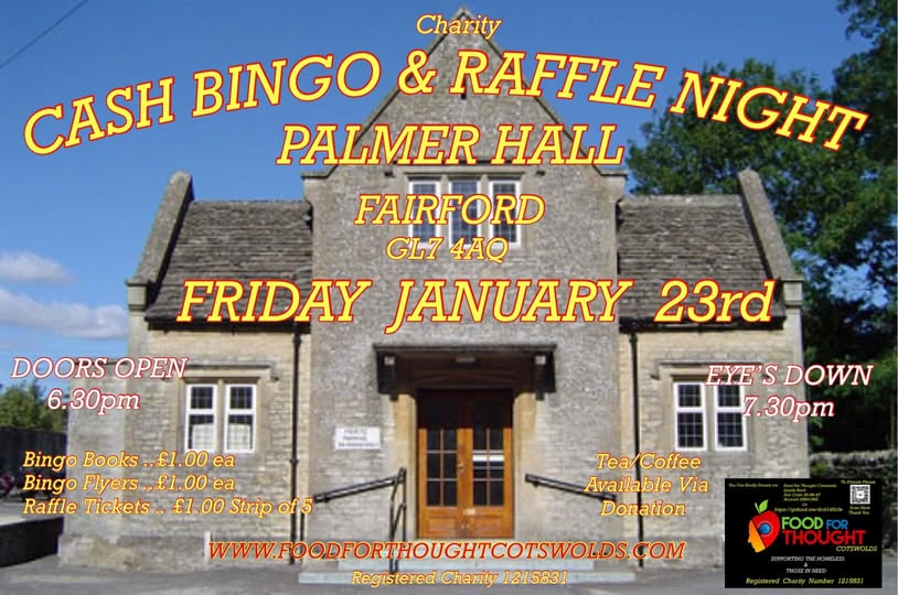 This Friday it’s Cash Bingo and Raffle Night at the Palmer Hall in Fairford,I got asked to do a bingo evening in Fairford again so this will be every month,I look forward to seeing you,Thank You in advance